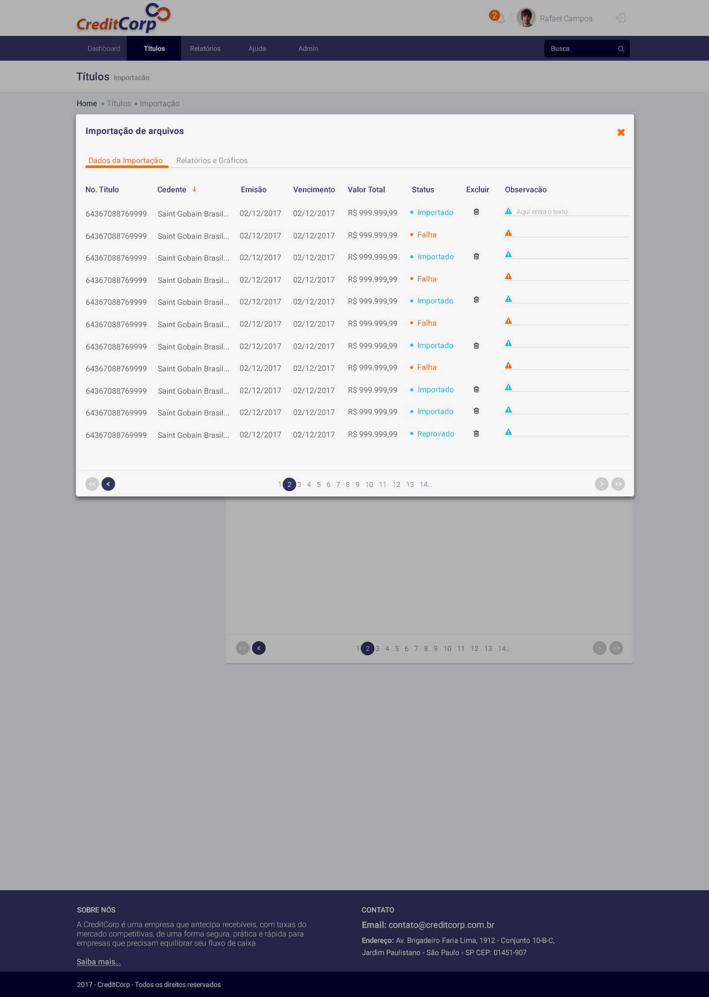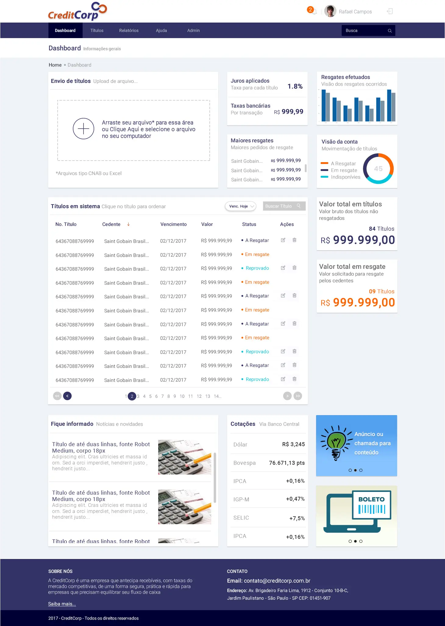 O projeto consistiu na criação da interface do aplicativo de administração de duplicatas, tendo como usuários o departamento financeiro de empresas e seus fornecedores como principal usuário da plataforma. Foi realizado o estudo de persona, fluxo de navegação de usuários tanto no sistema web como mobile, levantamento de requisitos entre outros estudo de UX e UI.